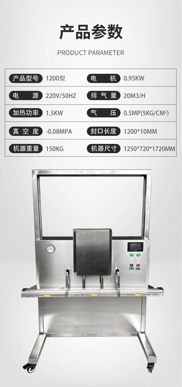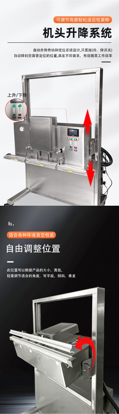 Owing to its unique design and performance features, the vertical external suction liftable vacuum packaging machine excels in packaging large-sized items and can ensure continuous, stable, and efficient operation. The specific introduction is as follows: