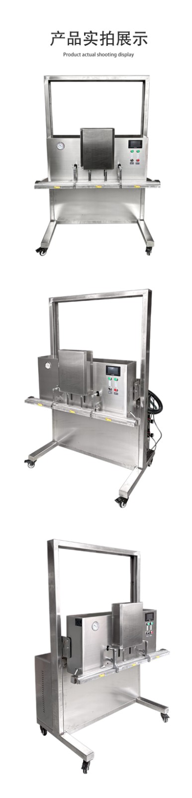 - Liftable Machine Head: The angle can be adjusted to suit the size, height, and weight of the product, allowing for horizontal, inclined, or vertical placement. With a lifting range of up to 0-700mm, it can be flexibly adjusted according to the height of large-sized items, facilitating operators to place the items in an appropriate position for packaging and reducing labor intensity.