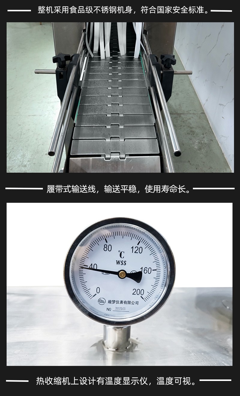 It monitors the temperature of the heating area in real time through thermocouples and temperature sensors, and cooperates with a controller to stabilize the temperature at the "optimal shrinkage temperature" of the film (different films have different temperature requirements—for example, POF film usually requires 120-180℃, while PVC film requires 80-120℃). This prevents film damage and charring due to excessively high temperatures, or insufficient shrinkage due to excessively low temperatures.