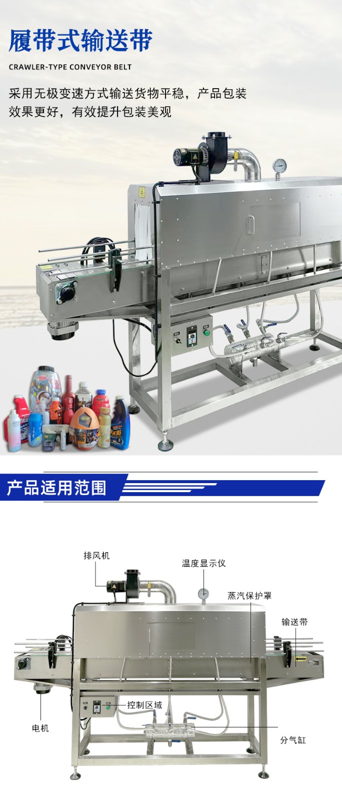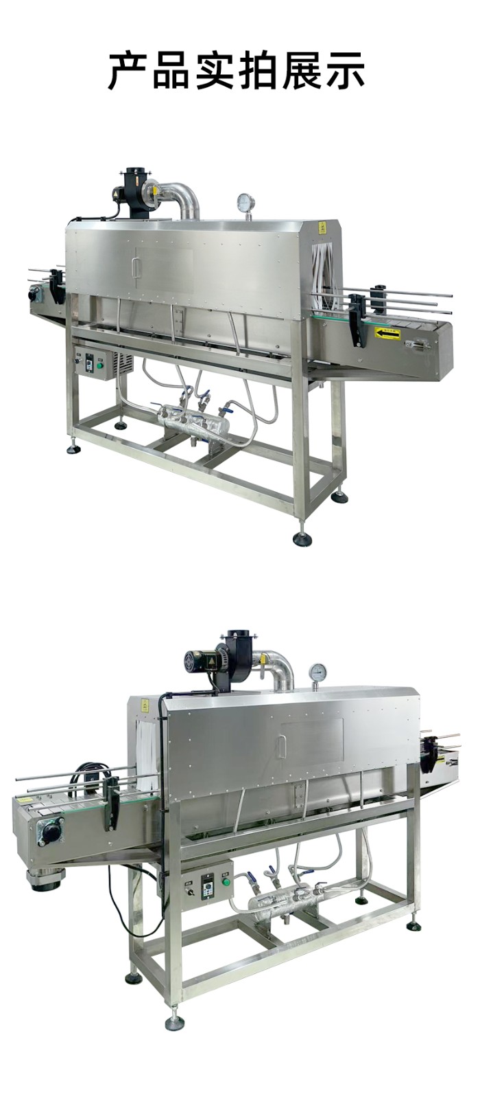 This is the key step to achieve "shrinkage". The equipment generates stable heat through its heating system. When the product covered with film enters the heating area (e.g., drying tunnel, shrink oven), the heat acts evenly on the heat shrink film: