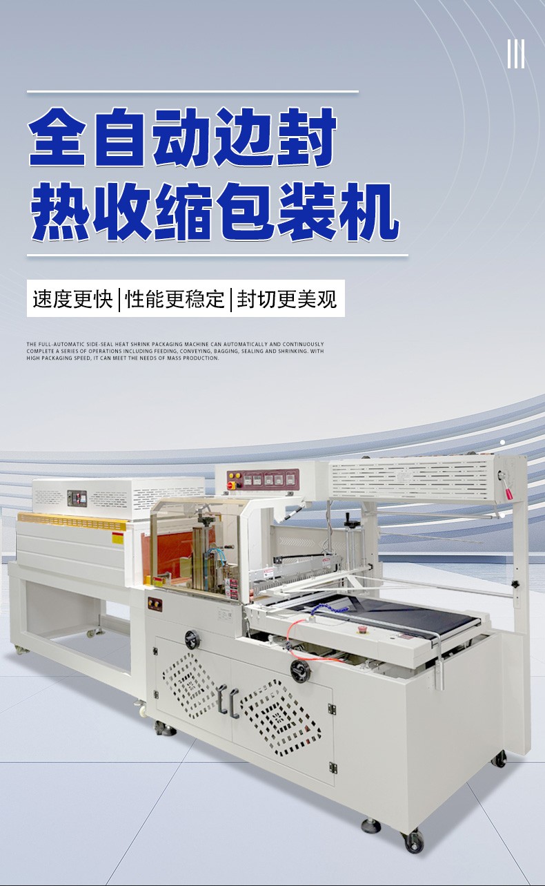 The automatic side sealing heat shrink packaging machine can improve efficiency while ensuring the sealing machine achieves centered and aesthetic packaging by optimizing equipment performance, precisely controlling the sealing and cutting position, and other methods. The details are as follows: