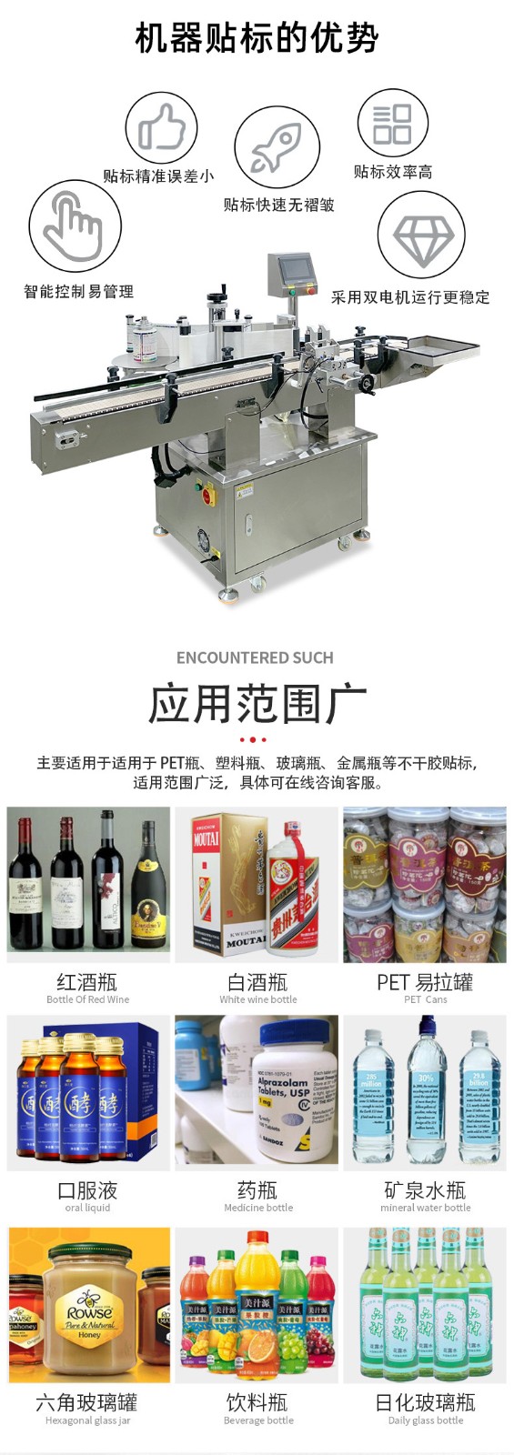 It has built-in functions such as "automatic bottle separation, no labeling without bottles, and label shortage alarm", eliminating the need for manual bottle sorting or monitoring of label supply. Some models also support linkage with front and rear production lines (such as filling machines and cartoning machines) to form a fully automated packaging process, reducing the risks of manual handling and operational errors.