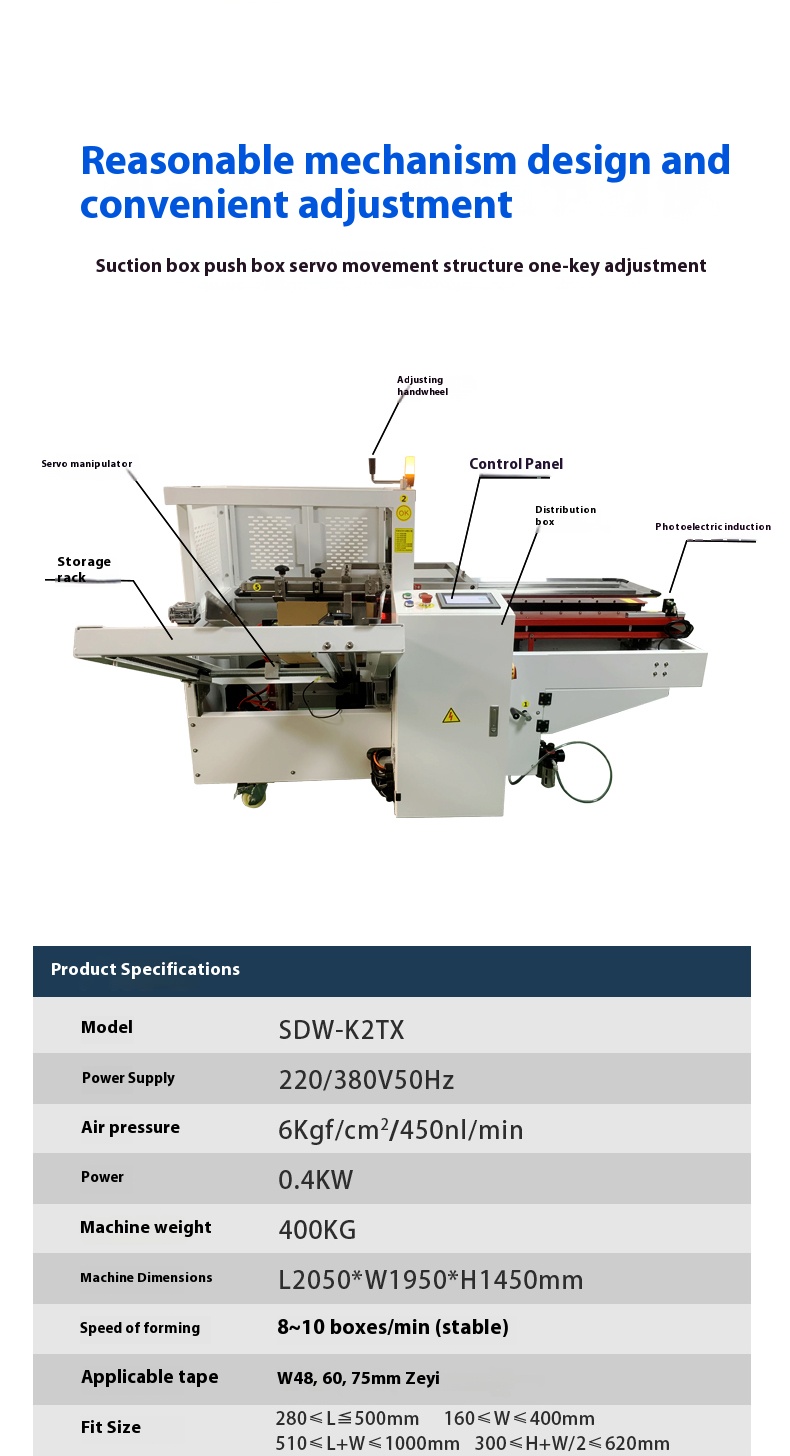 - Wide applicability: The machine is suitable for cartons of various materials and sizes, including heavy-duty rigid cartons and ordinary lightweight cartons. It can adapt to different carton specifications with only simple adjustments.